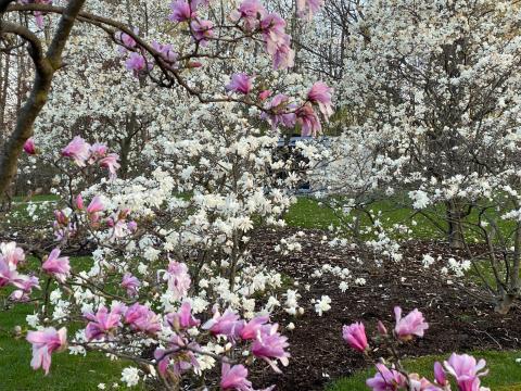 Magnolia make an impressive floral display in late April and early May. If the flowers of Magnolia lasted a month, we would tire of their beauty. But like a bouquet of cut-flowers, Magnolia blooms fade almost as quickly as they open. In a spring season of cool damp weather, Magnolias will bloom for 3 weeks or more, but as soon as hot dry weather arrives, flowers drop in a matter of days.