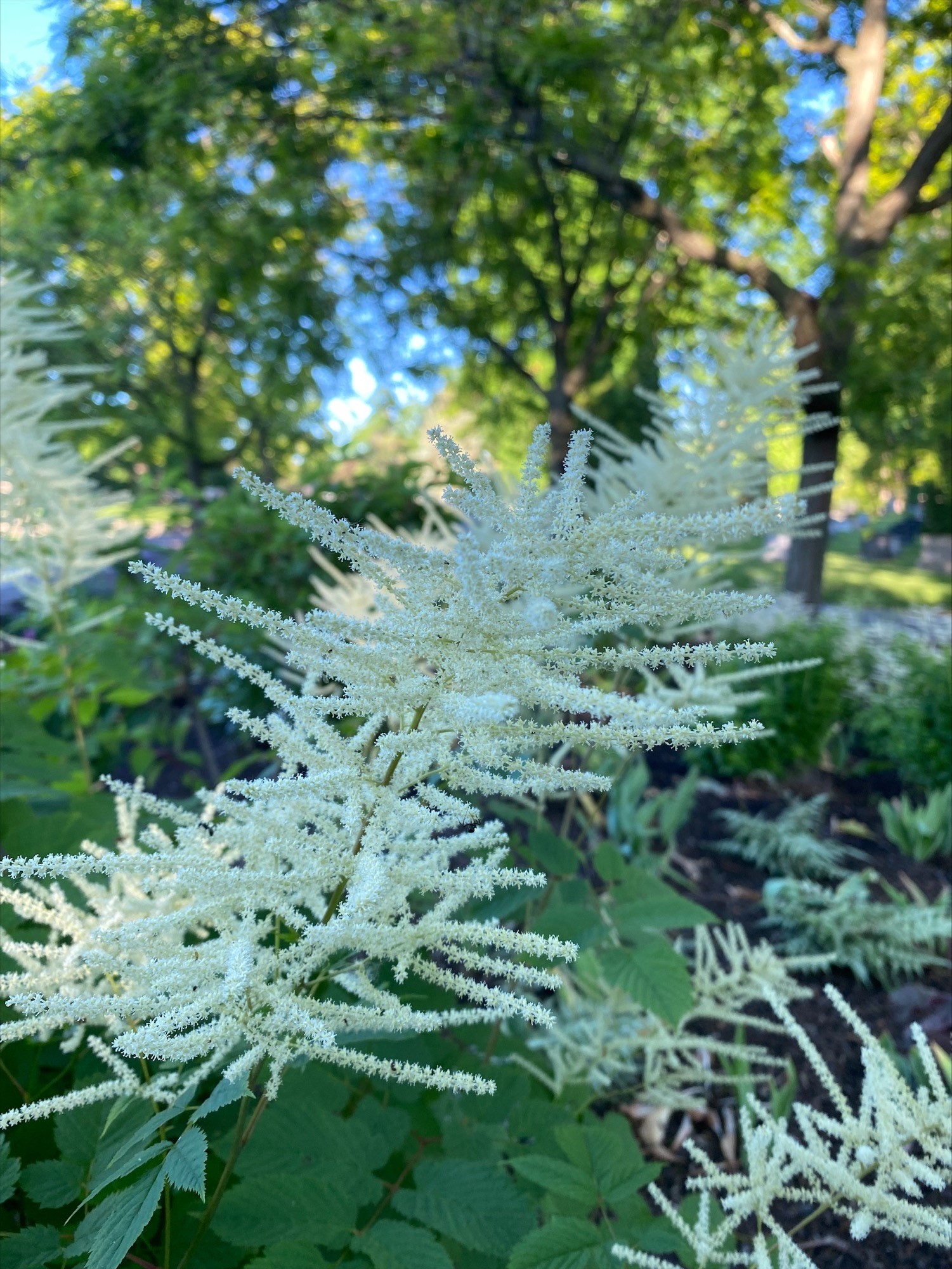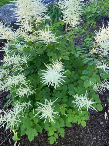 The Dwarf Goat’s Beard blooms from early to mid-summer. Once the flowers are less prominent, the mound of fern-like leaves take over, providing an extended visual appeal through the late summer into the fall when it turns orange or yellow.