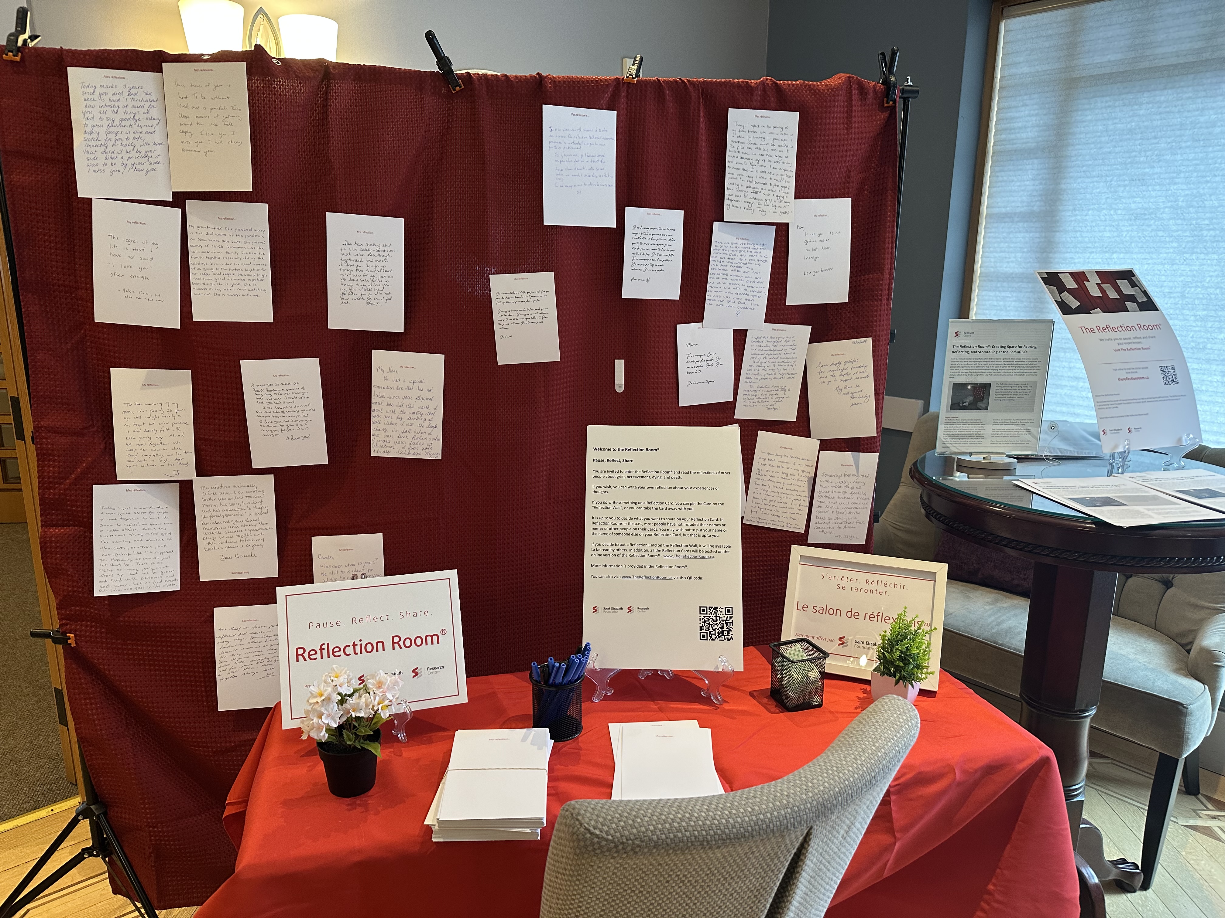 Originally developed in 2016 by the SE Research Centre in collaboration with Memorial University, the Reflection Room integrates expertise in end-of-life care, grief, and bereavement, offering a tranquil space for people to reflect on the importance of legacy, healing, and connection in our lives.