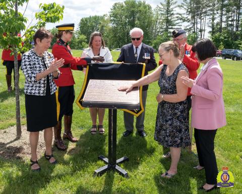 As the ceremony commenced, Veterans Affairs Canada Minister Petitpas-Taylor, Mrs. Suzanne Nadon-Metcalfe, Deputy Commissioner Boudreau, retired Commissioners Philip Murray, Bev Busson, and Brenda Lucki, Ottawa Division President Wayne Jacquard, and other members of Commissioner Nadon’s family were invited to come forward and participate in the unveiling.