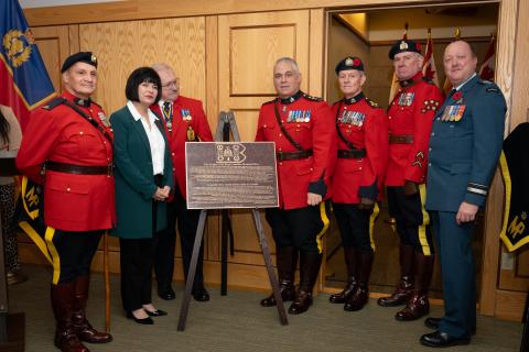 The RCMP National Memorial Cemetery ceremony included unveiling a commemorative plaque celebrating the Guidon’s history and significance. Special guests participated in the unveiling by Madame Ginette Petitpas Taylor, Minister of Veterans Affairs Canada RCMP Commissioner Mike Duheme Major-General Simon Trudeau, Canadian Forces Provost Marshall Wayne Jacquard, President, RCMP Veterans Association – Ottawa Division. Joining them were RCMP veterans who served during the Afghan mission Staff Sergeant Major Marc Dureau Sergeant David Muirhead Assistant Commissioner Graham Muir