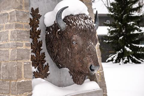 At the entrance of the RCMP National Memorial Cemetery sits two Bison Head Pillars. The origin of the North American bison as the symbol of the NWMP is unknown.