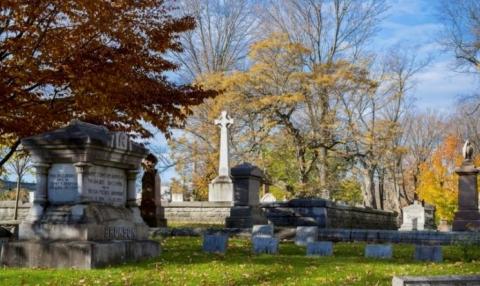 The centerpiece of the Fleming plot is a magnificent, towering Celtic cross. Around the base is inscribed: “This Scottish memorial cross marks the burial ground of the family of Sanford Fleming – erected July the first 1889.”