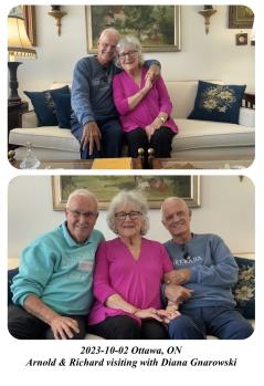 Diana Anne-Marie Gnarowski (Paquet) died peacefully Monday, January 13, 2025, at May Court Hospice in Ottawa. She was born July 28, 1939 in Arvida, Quebec, to parents Earl Paquet (1975) and Francoise Chiasson (1991). She grew up with siblings Armand (2020), Gerald (2011), Marie-Therese and Paul (2006). Her eyes on a bright future, she moved to Montreal where she worked and met her husband of 62 years, Michael Gnarowski (2023). Together they had three children, Franceska (Christopher Ladurantaye), Sybille (2011) and Danik.
