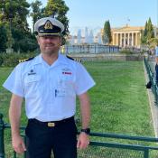 Kyle was initially reluctant to follow his father and older brother into the family business of the military. He had tried Sea Cadets briefly as a teenager and found it interesting, however, as soon as it interfered with sports he was out. During his first year in university, he applied for University Naval Training Division (UNTD) to help finance his education. He carefully shortened his beautiful mane of 90’s “hockey hair” step by step at each stage of the selection just in case he changed his mind. His first summer of Naval Officer training had him hooked. The combination of teamwork, community, athletics, challenges, and the opportunity for unique adventures was a perfect fit for Kyle’s personality. Kyle served 32 years as a Naval Warfare Officer and some of the highlights of his career were Operations Officer for HMCS MONCTON, graduating Staff College, and representing Canada on NATO’s CIOR three times. His proudest moment, however, is his current and last position in the Royal Canadian Navy and that is Commanding Officer of his home unit, HMCS SCOTIAN in Halifax, NS. Kyle was extremely proud of his unit and his sailors. It was the highlight of his career to have had the privilege of leading them.