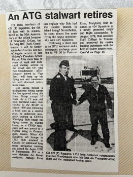 Bob was an icon in the RCAF Maritime Patrol community. His family name and his stature earned him the sobriquet " Pup Tent " early in his career. A professional through and through, Bob was a pleasure to work with a great guy. When they made Bob, they broke the mold. Fair skies and following winds Bob.