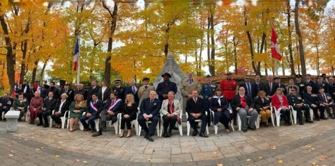 Les invités et les intervenants lors de la cérémonie étaient: M. Michel Miraillet, Ambassadeur de France au Canada, la présidente du Conseil du Trésor, l'honorable Mona Fortier, les sénateurs Conway-Mouret de France et Serge Joyal du Canada, le Député des Français de l'étranger Christopher Weissberg, le député et président de l'Association interparlementaire Canada-France, Marie-France Lalonde, le sénateur Yan Chantrel et le major général Simon Bernard.