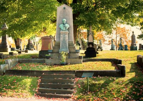EN VOUS PROMENANT DANS LE CIMETIÈRE BEECHWOOD, l’un des points forts est le monument de Nicholas Flood Davin. Les députés du Parti conservateur ont érigé le monument en 1903 pour leur collègue député après sa mort. C’est un monument assez unique dans l’histoire et dans sa conception globale.