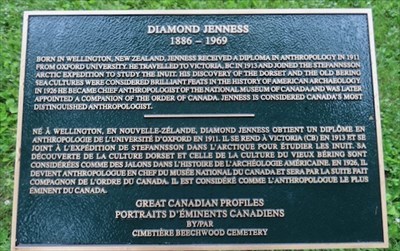 Découvertes archéologiques Bien que la majeure partie du temps de Jenness ait été consacrée aux études autochtones et aux tâches administratives, il a également identifié deux cultures esquimaudes préhistoriques très importantes : la culture Dorset au Canada (en 1925)[20] et la culture Old Bering Sea en Alaska (en 1926),pour lequel il fut plus tard nommé "Père de l'archéologie Inuit." Ces découvertes archéologiques étaient fondamentales pour expliquer les schémas de migration, et les opinions de Jenness étaient considérées comme "radicales" à cette époque. Helmer déclare : "Ces théories sont maintenant largement acceptées, ayant été confirmées par la datation au carbone 14 et les recherches de terrain ultérieures."